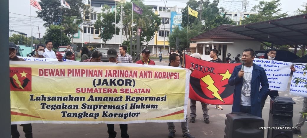 RadarSumsel.com, Palembang – Dewan Pimpinan Pusat Jaringan Anti Korupsi (DPP JAKOR) Sumatera Selatan meminta batalkan hasil seleksi Anggota Bawaslu Kabupaten/Kota Se-Sumsel 2023. Unjuk rasa ini digelar di depan kantor Bawaslu Provinsi Sumatera Selatan dan Kantor Kejaksaan Tinggi Sumatera Selatan.